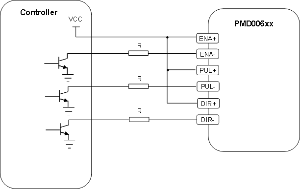 Wiring diagram (when the output voltage of the controller is within 5V, the resistance R can be omitted)